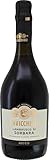 まず最上級ラインのオテッロ ネロ ディ ランブルスコ 1813は、創業者「オテッロ・チェーチ」の名と、ヴェルディの作品「オテッロ」に由来する四角いボトルが目印です。マエストリ種100%で造られ、スミレがかった濃紫色の外観が美しく、ベリーやチェリー、ライラック、ムスクが複雑に香ります。残糖値は30g/L(辛口の分類内での上限近く)で、ほのかな甘みが果実味と溶け合う高品質な辛口ランブルスコです。フォアグラや青カビチーズとの相性が抜群で、スパイシーなメキシコ料理やアジア料理にも合わせやすい懐の深さがあります。